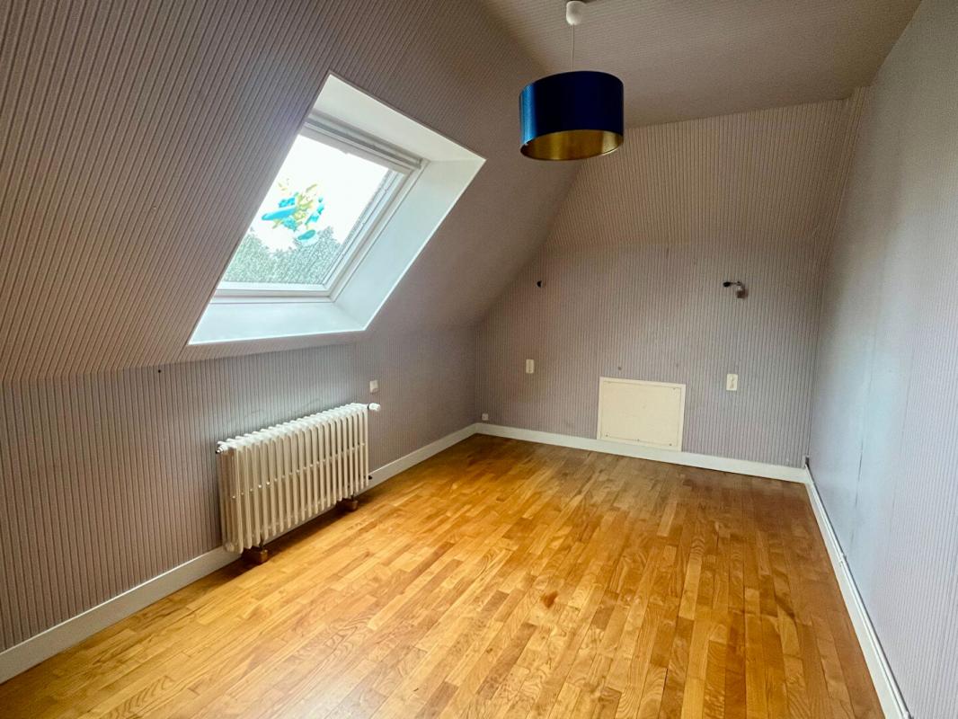A l’étage, une salle de bains, deux chambres, un WC, un grenier isolé, un débarras. Sous-sol complet avec garage, cave, buanderie et atelier.