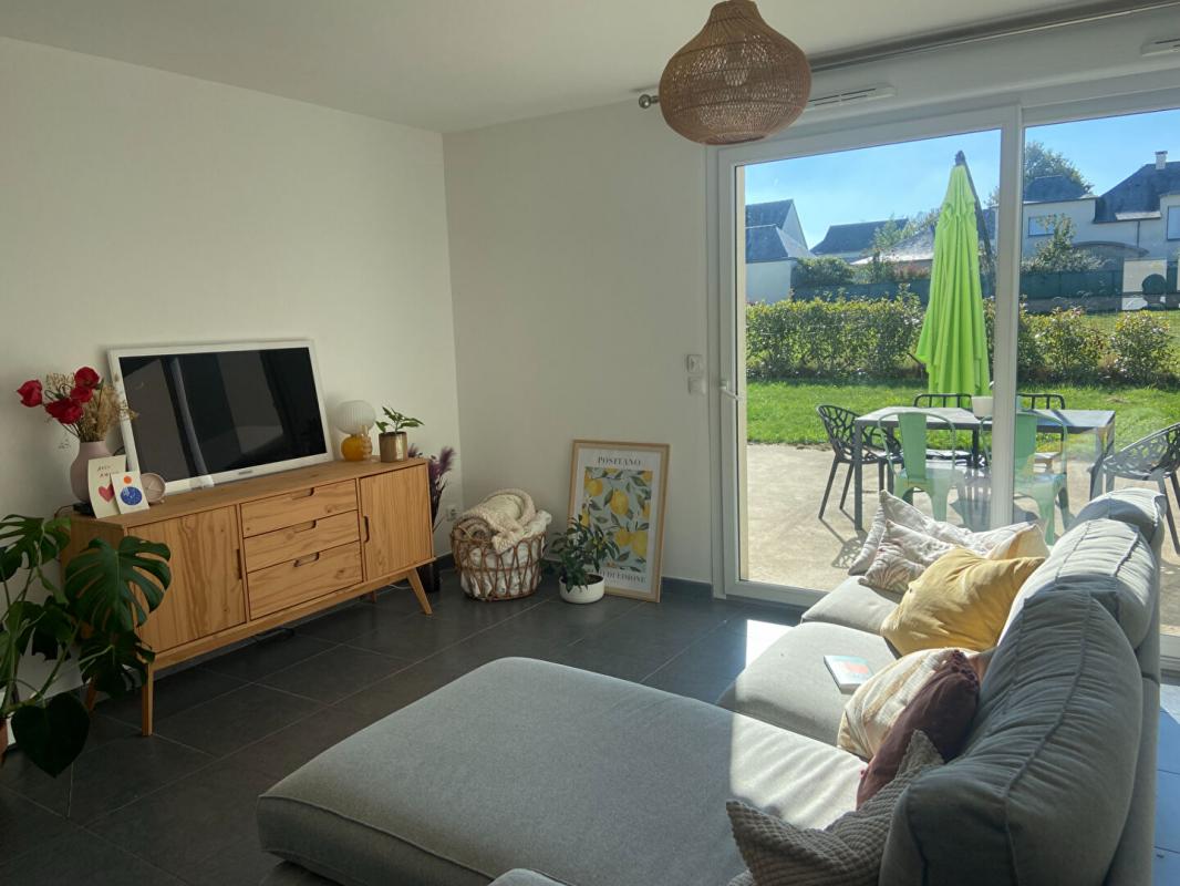 Maison de 2019 comprenant une cuisine aménagée et équipée , un salon séjour lumineux donnant sur une terrasse et un jardin sans vis à vis , une chambre avec sa salle d’eau et un cellier.