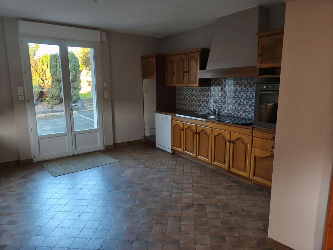 Grande Maison Familiale située dans le bourg . Grande Pièce de vie lumineuse  ouverte sur une cuisine aménagée, 1 chambre , WC . Etage 3 Chambres dont 1 avec balcon ,  douche à l’italienne WC  Buanderie ( cheminée) 2 Garages +  grand grenier.  terrain de 300m2 env. Chaudière à granulés. www.georisques.gouv. Loyer 700 euros + 32 euros provision charges (entretien chaudière +TEOM) . Dépôt de garantie 700 euros . Frais d’agence Part  locataire 462 euros (dont 228 TTC d’État des lieux d’entrée) .Libre de suite