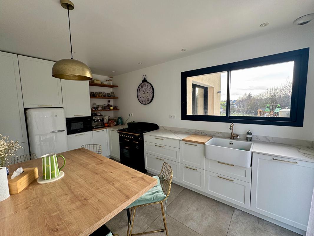 Proche Vitré et accès 4voies, venez découvrir cette très belle maison contemporaine construite en 2022 avec des matériaux de qualité et offrant de beaux volumes comprenant au rez-de-chaussée : un salon/séjour lumineux de 50m² donnant accès à une terrasse exposée Sud-Ouest , une cuisine ouverte aménagée et équipée (Piano de cuisson, réfrigérateur, lave-vaisselle, micro-ondes), une arrière-cuisine/buanderie, un WC. La partie nuit dispose d’un bureau/chambre, une suite parentale avec chambre, dressing, salle d’eau et accès à la terrasse. L’étage se compose de trois chambres dont deux ayant accès à une terrasse très agréable, une salle de bains (douche et baignoire) et un WC. Garage de 33m² avec porte motorisée. Chauffage au sol par une pompe à chaleur. Terrain de 562m² (4.00 % honoraires TTC à la charge de l’acquéreur.)